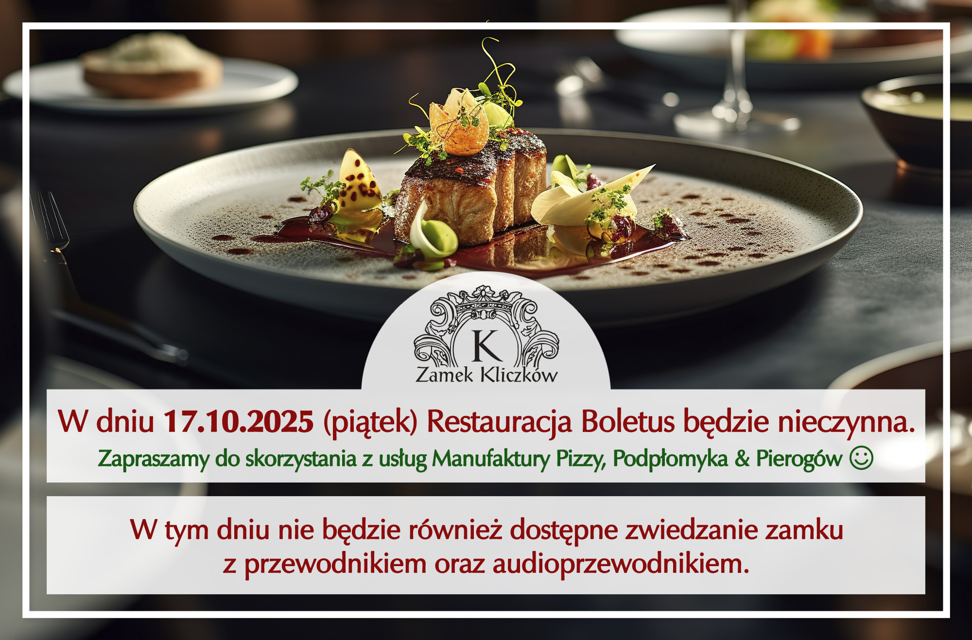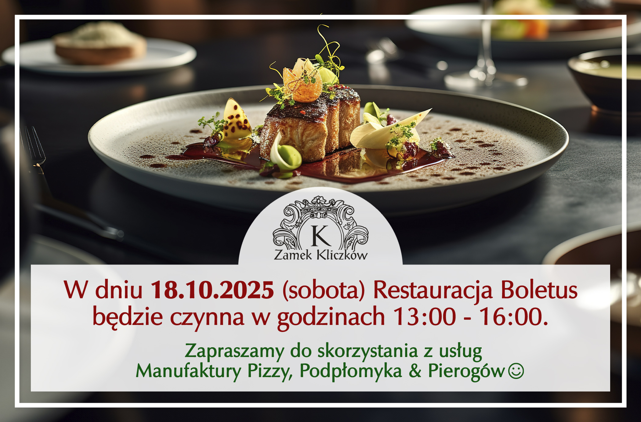 W dniu 17.10.2025 Restauracja Boletus będzie nieczynna