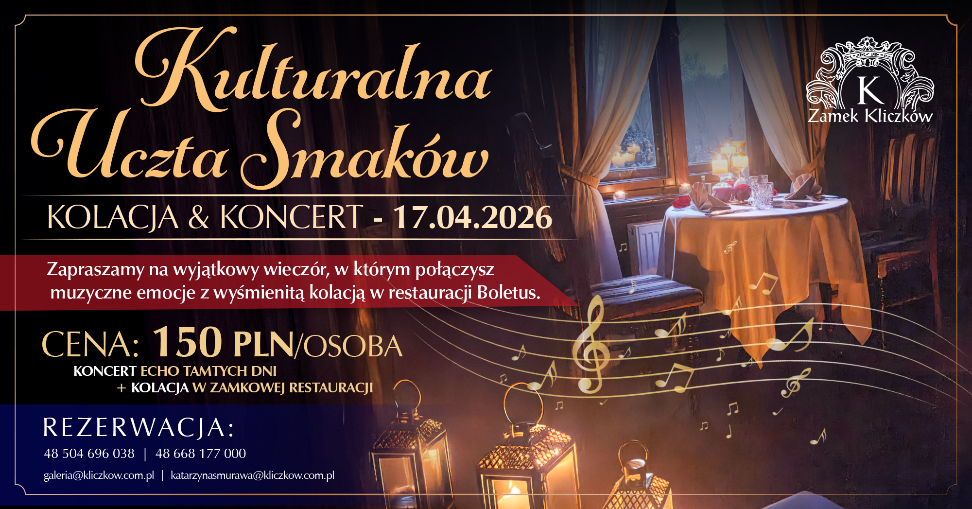 Koncert + Kolacja w zamkowej Restauracji Boletus